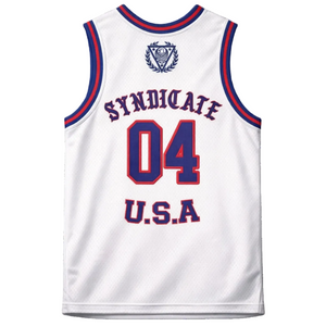 The Syndicate MMA USA jersey delivers a clean, athletic look rooted in American fight culture. Featuring bold lettering, a classic numbered back, and U.S.A. branding, the design keeps things straightforward and intentional without overstatement.